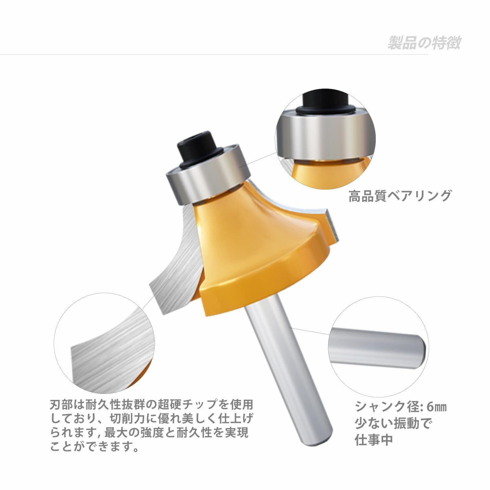 ▲15本組, 色: イエロー, シャンク径: 6㎜。溝ほり 面取り 飾り面加工用。ルータービットの刃部にYG6Xタングステン鋼合金を採用し&表面塗装, 切削力に優れ美しく仕上げられます, 最大の強度と耐久性を実現ことができます。