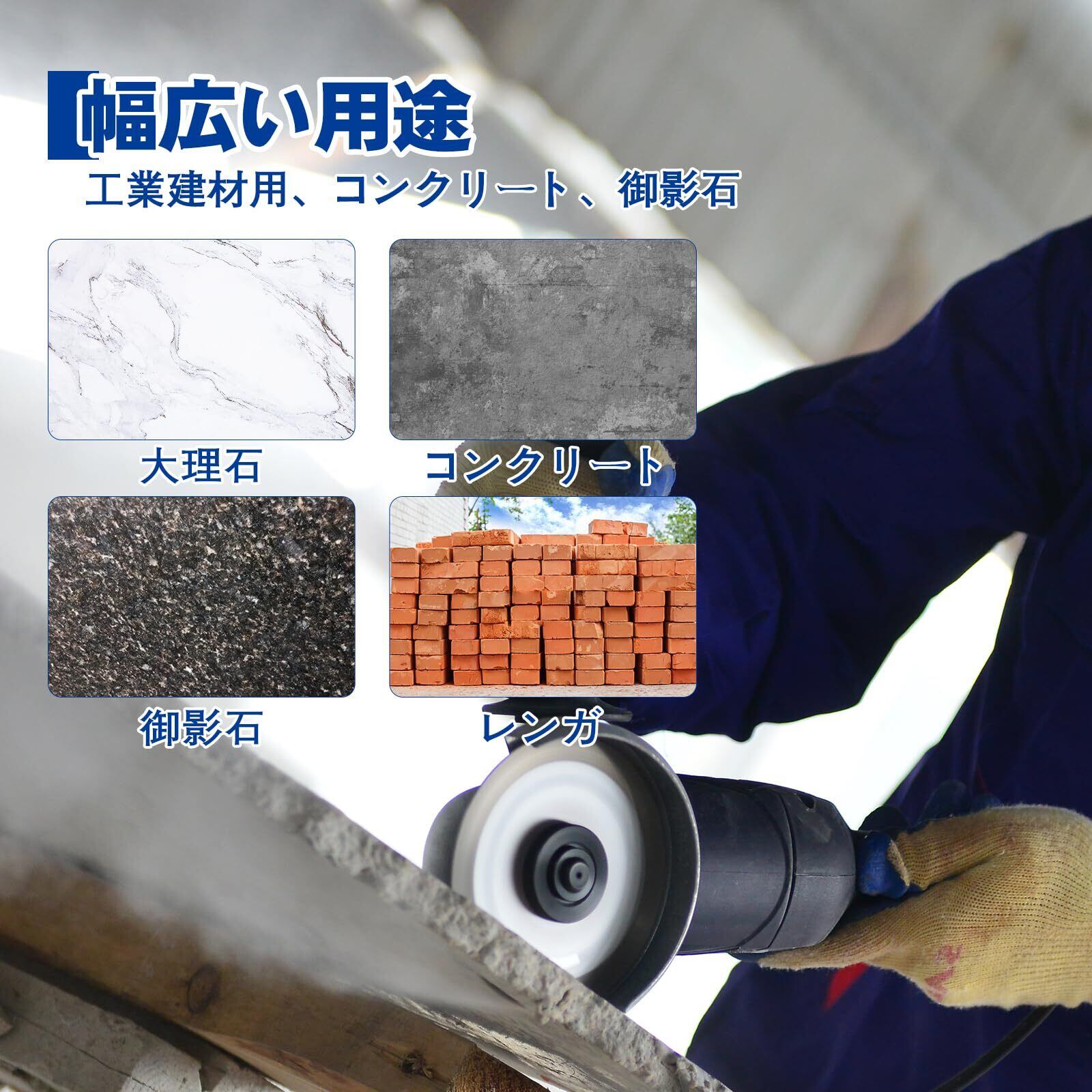 適用な機種:ダイヤモンドブレードのサイズは外径105mm、内径は20㎜、15mmアタブターリング付き、厚みは1.8mm。最高回転数14,000rpmのディスクグラインダー用。市販のあらゆるタイプのディスクグラインダーに対応。