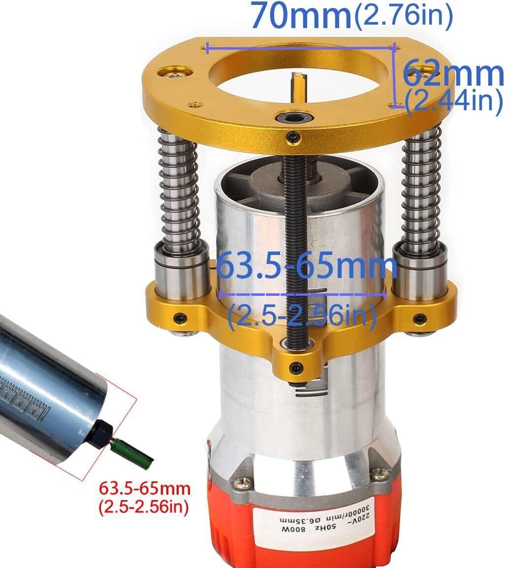 【適用】:リフトテーブルベースは汎用品です。直径が64-65mmのトリマーなら大抵適合できます。天板に取り付ける位置のネジ穴サイズ:70 x62mm。