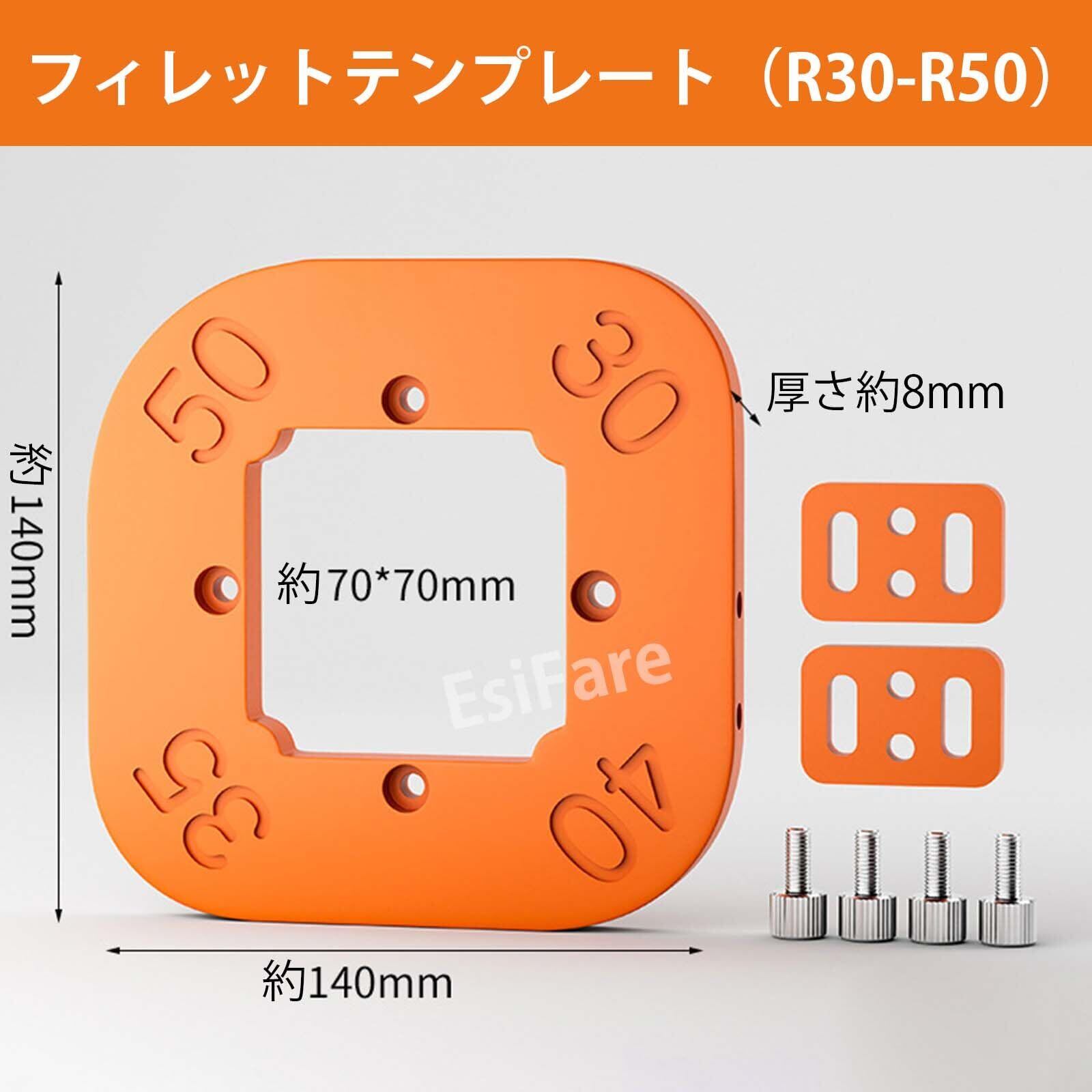 EsiFare コーナー加工治具 半径テンプレート 4 in 1コーナー治具 木製ボード ルーターテンプレート アーク切断補助ツール 半径ジグ切削工具 木工用丸コーナー位置決め金型 円弧切断 再利用可能 木工ルーティング用 R30~R50