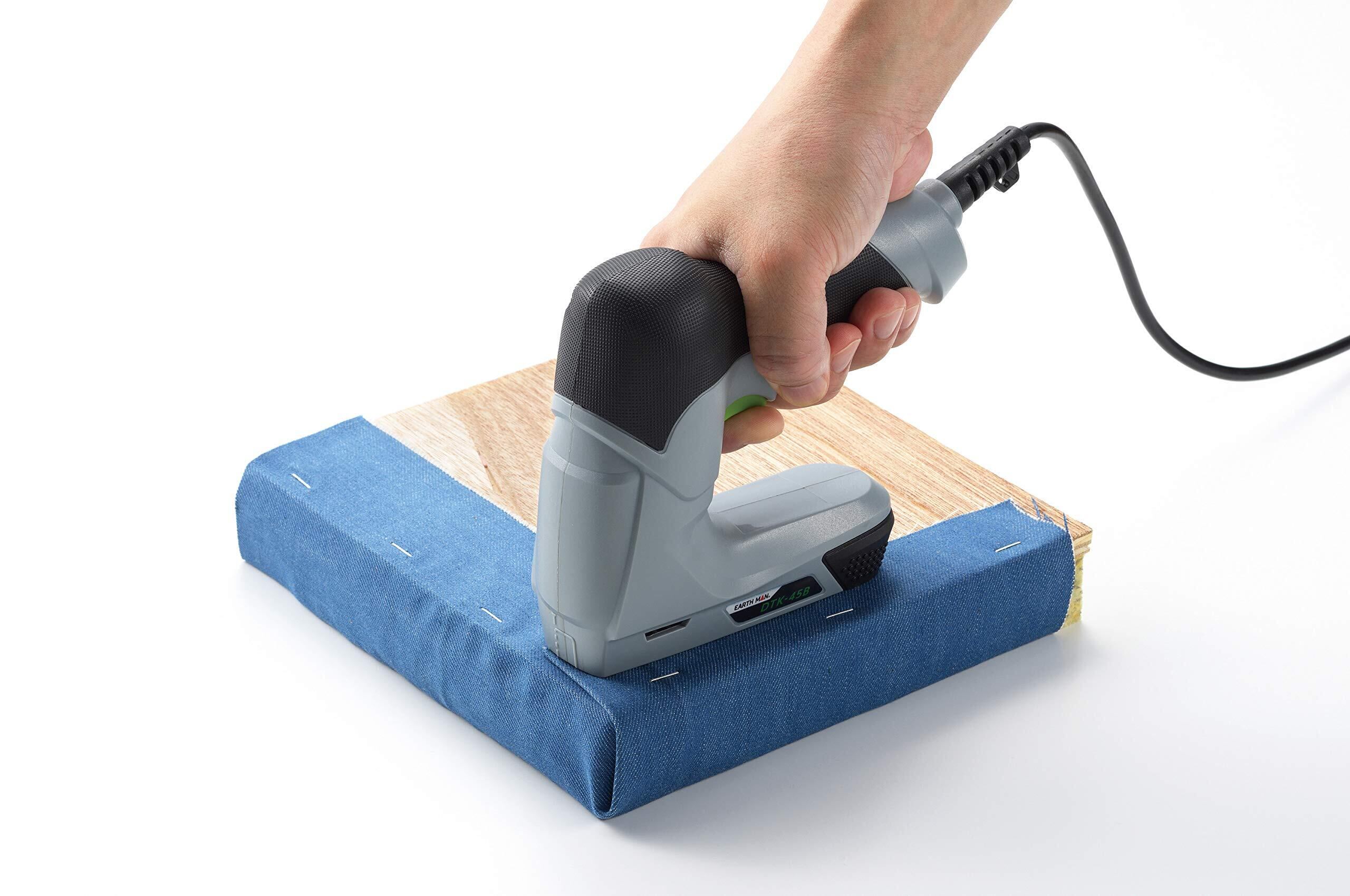 高儀(Takagi) EARTH MAN 電動タッカー DTK-45B【安全装置付き、誤発射防止】【ステープル、T型ネイル1000本付属】【布や革などの木材への留め作業に】