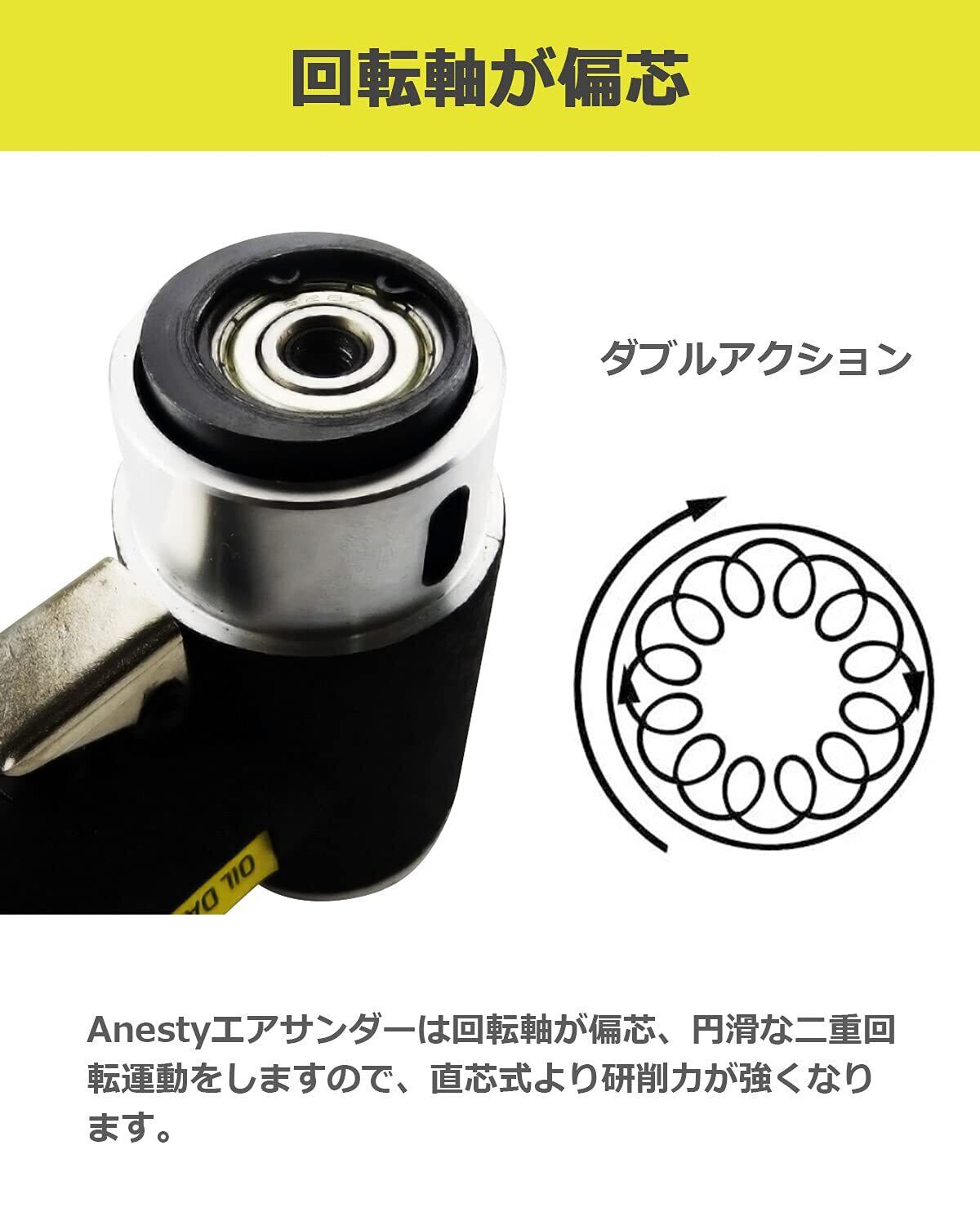【在庫処分】Anesty エアサンダー ダブルアクションエアサンダー 小型 回転軸が偏芯 ポリッシャーエアサンダー ポリッシャー オービタルサンダー ハンドサンディングツール 研磨パッド3サイズ ウールパッド9個、スポンジパッド15個 サンドペーパー30枚付き | bobo