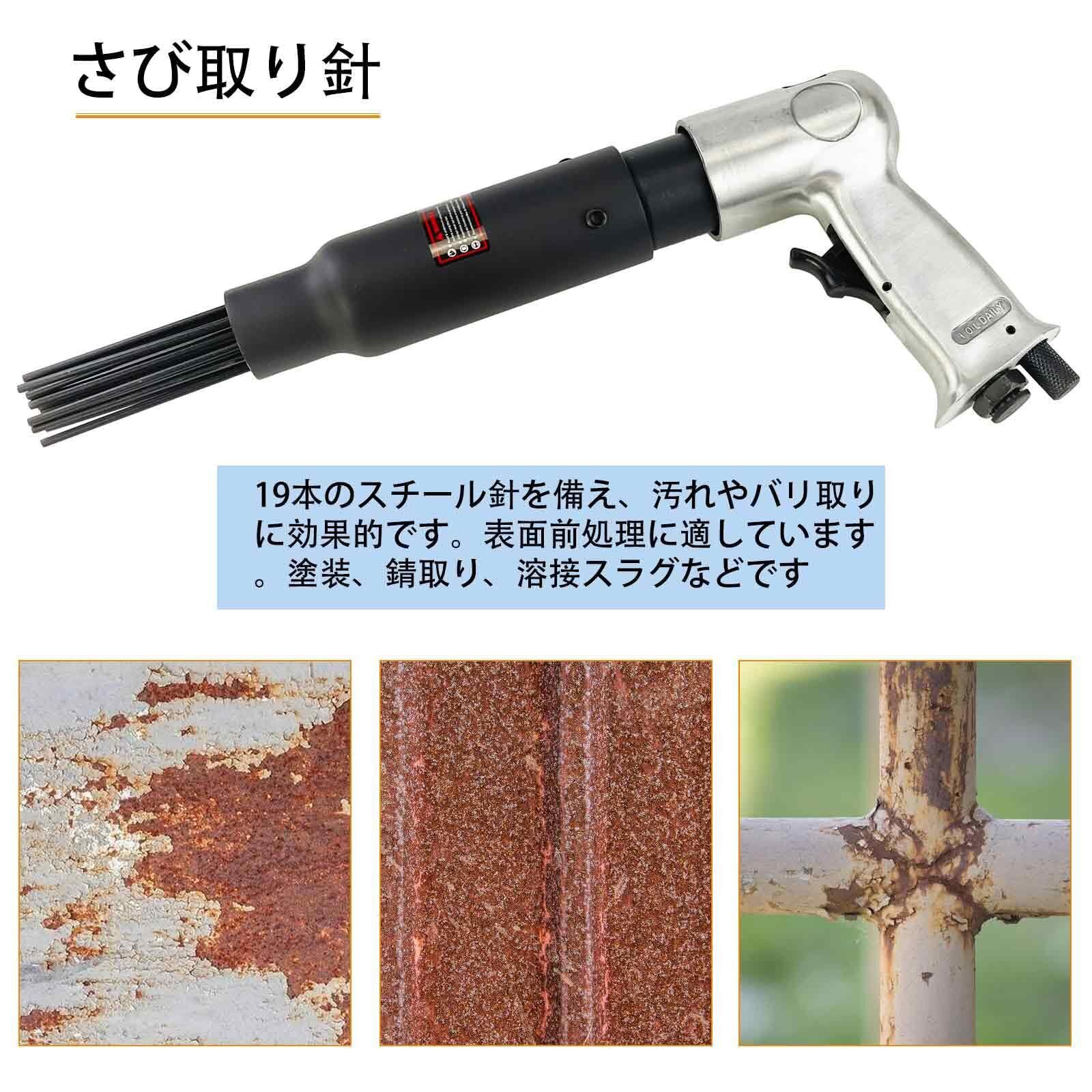7Akiranoai ニードルスケーラー 打撃数4500回/分 19本の硬化鋼針 ニードル直径約3mm 空気針スケーラ 錆・溶接スラッグ除去ツール