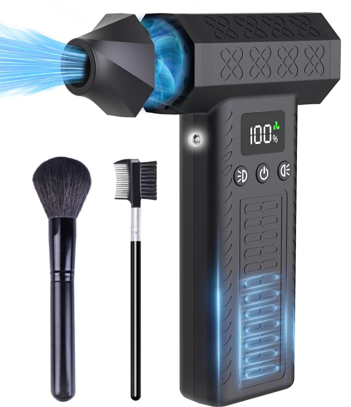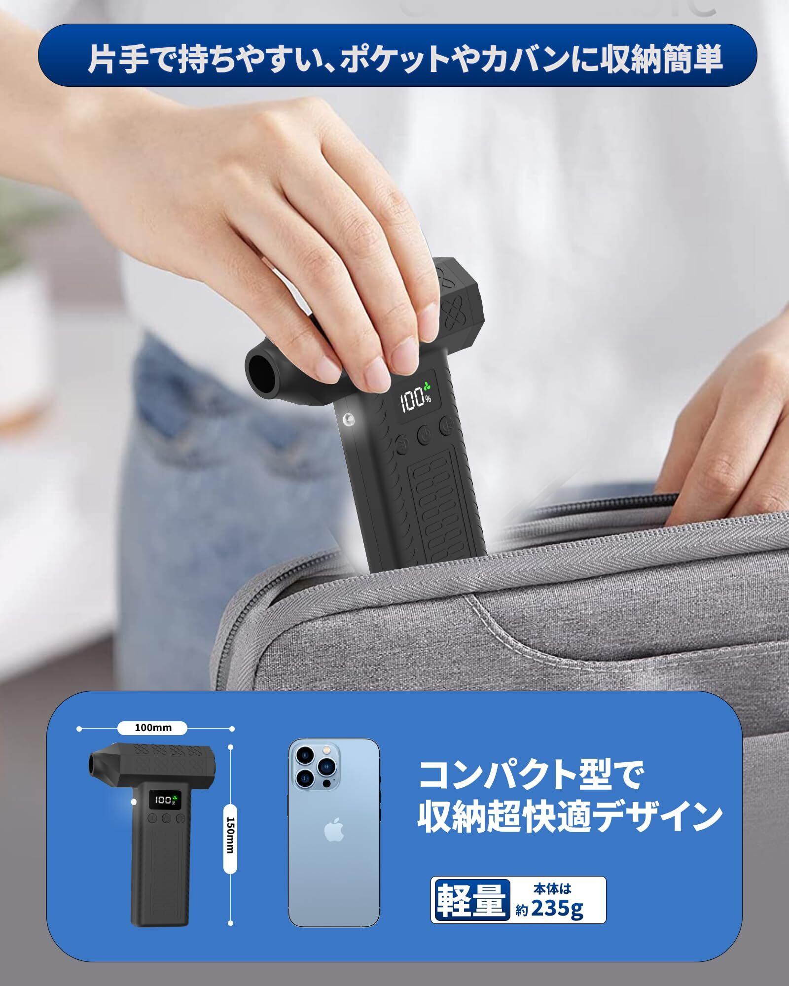 3代目 最強のブロワー 小型で超強力 300000rpm電動エアダスター 充電式 洗車 最大風速120m/s+3段階風量調整+10000mAh+2つLEDライト付き+数字LCDディスプレイ搭 純真鍮ブラシレスモーター 274g超軽量 2本ブラシ付き PC/キーボード/エアコン掃除用