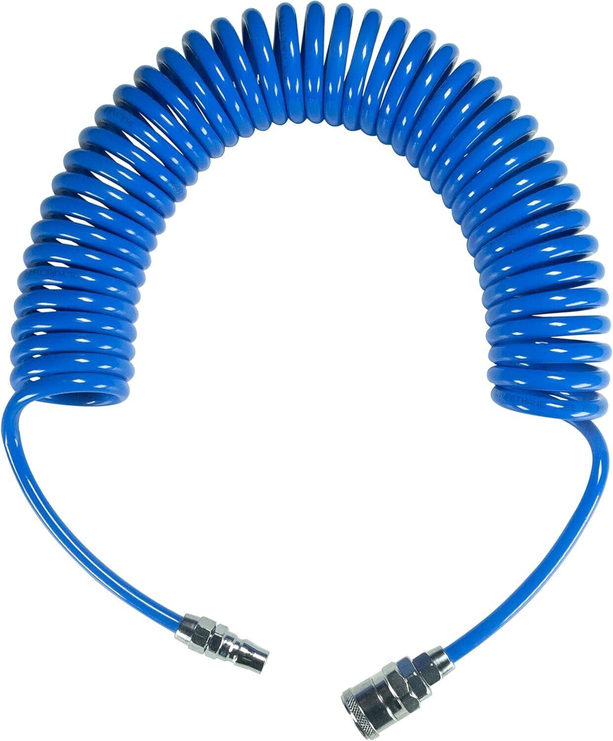 【特価セール】STEELMIGHT スプリングエアーホース PUホース プラグ付き 最高使用圧力1.0MPa 青 耐高温耐寒 使用温度範囲-20°~70° (6M:内径5mm×外径8mm)) | bobo