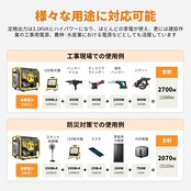 【コンパクトで安定性が良い】剛性の高いフレームを採用し頑丈に作られています。ラバー足で安定性を保ちます、 外部の衝撃からエンジンや発電ユニットをしっかり守ります、現場作業のハードな使用にも耐えられます。フレームが広範囲にあるので持ちやすく、車での持ち運び時に紐等で固定しやすいです。