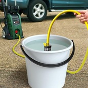 【簡単な吸引】水道水を直接使わず、タンクやバケツ、浴槽等の容器より給水が出来ます。水源がない場所での使用にも便利です。