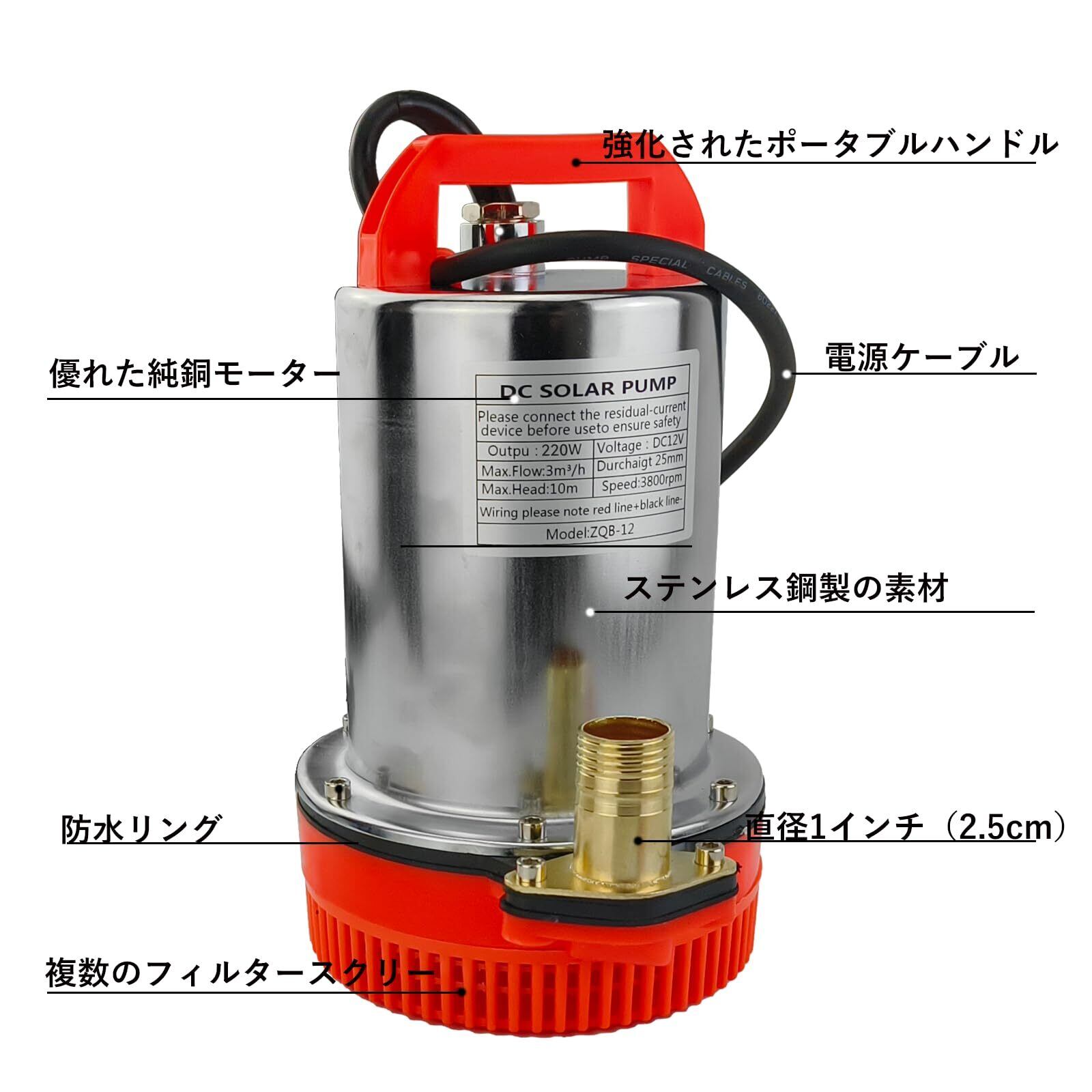 AeKeatDa DC 12V 220W 太陽光送水ポンプ DC潜水ポンプ ソーラーパネル 水中井戸ポンプ 給水 排水ポンプ 揚程10m