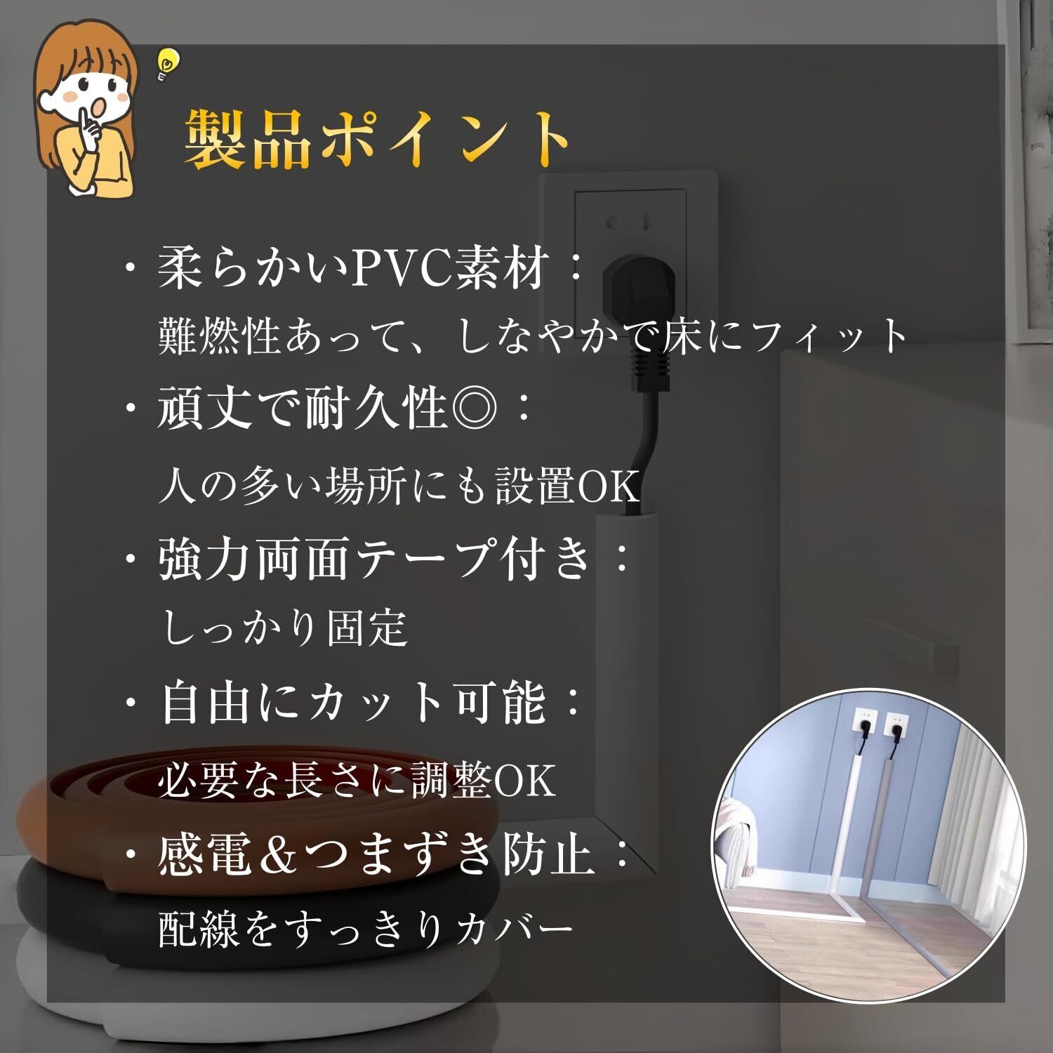 【柔らかく安全性に優れた素材】 高品質なPVC素材を使用し、耐久性に優れ、柔らかく滑り止め効果もあります。特に小さなお子様やペットのいる家庭におすすめです。絶縁性にも優れ、電気配線を安全に保護し、漏電やショートのリスクを軽減します。安心してご使用いただけます。