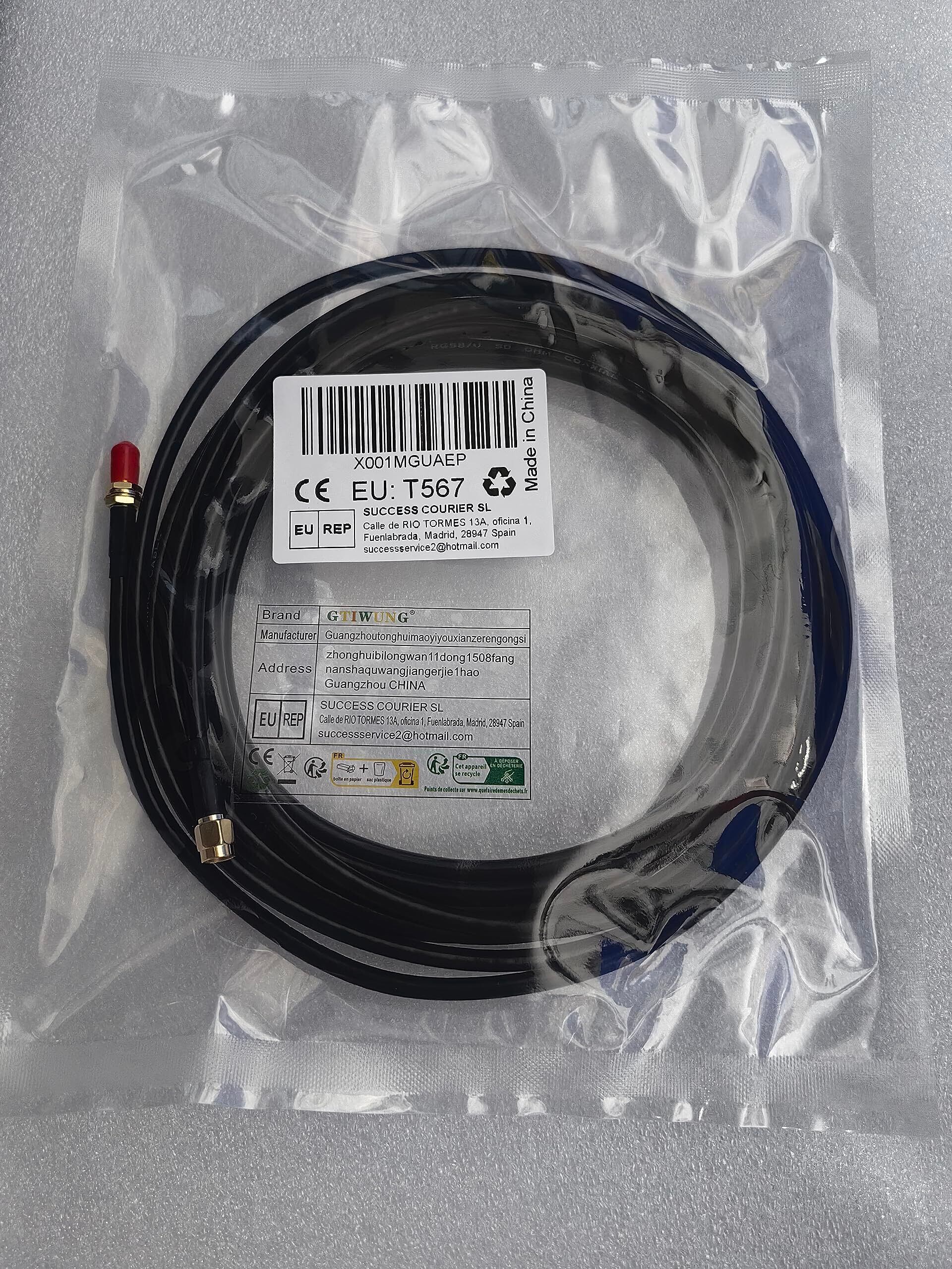 GTIWUNG WIFIアンテナ RG58 RP-SMA 延長ケーブル SMA オス - SMA メス RP-SMA オ スがメスへの無線LAN SMA ケーブル 同軸RFコネクタ アンテナ延長線 SMAプラグ アンテナコネクタ ケーブル長は5M