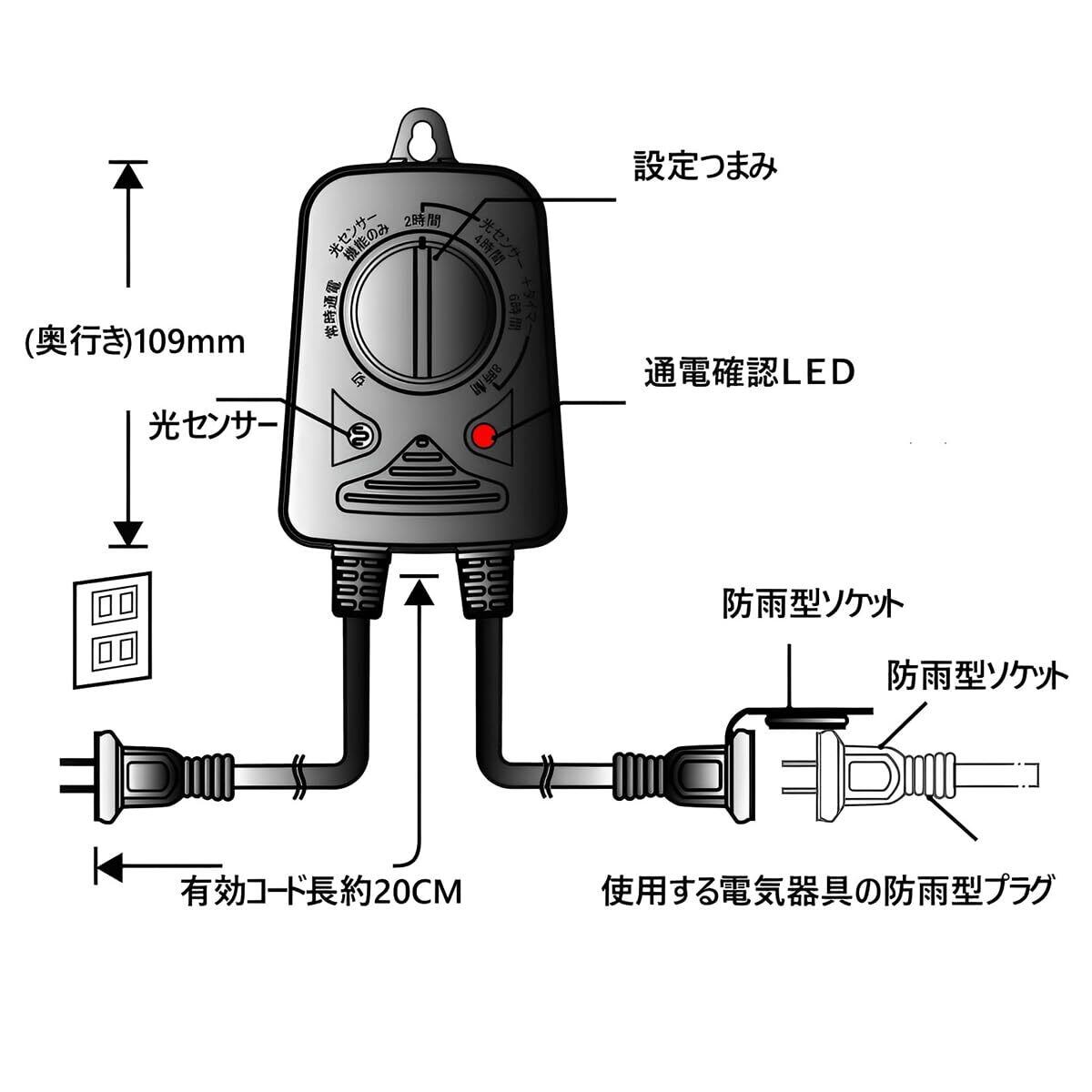 ●光センサー付きタイマー 防水防雨型 2時間/4時間/6時間/8時間 消灯時間自由設定 屋外 自動点灯 装飾灯 ガーデンライト 玄関灯 防犯灯 照明 キャップ付