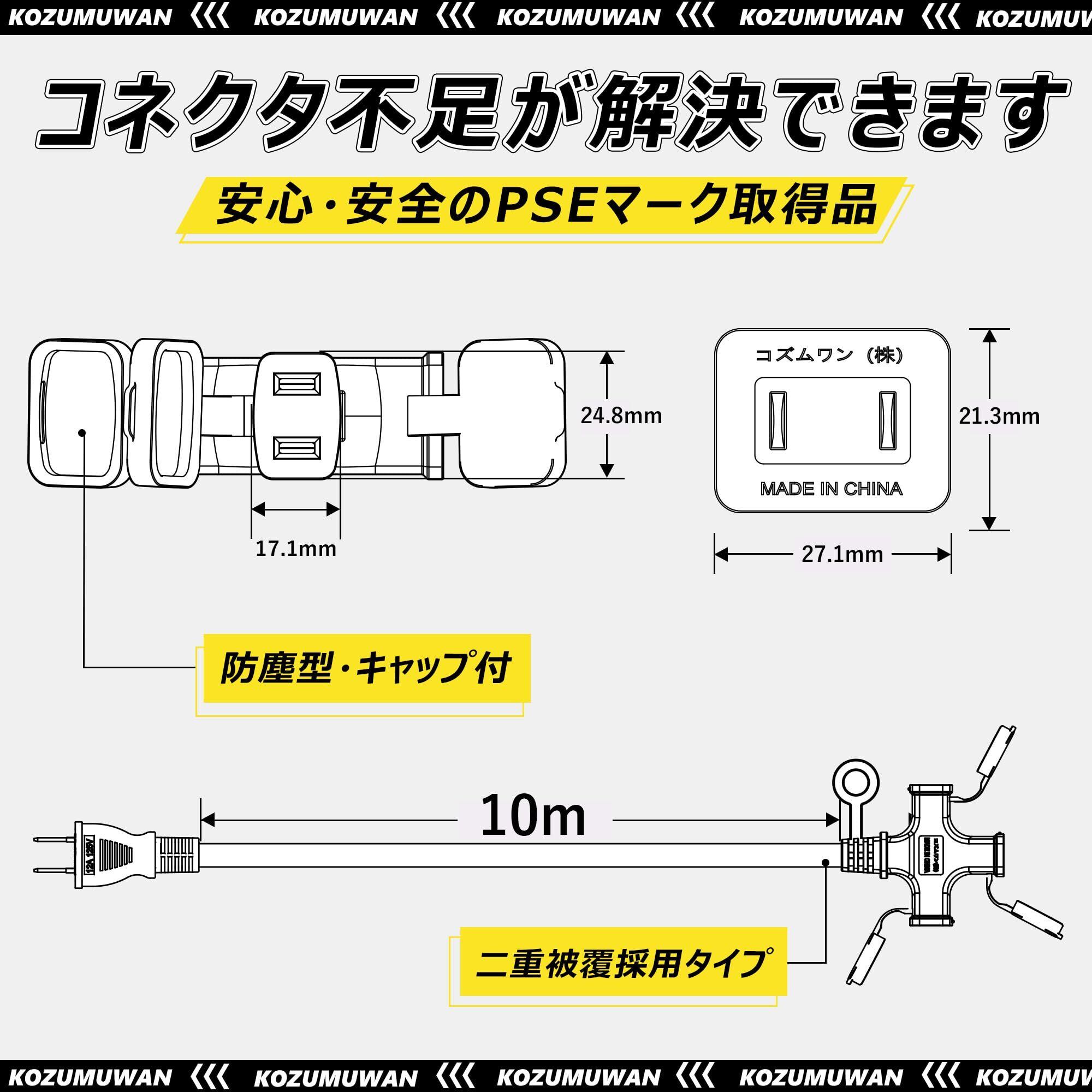 ■【防塵キャップ付き三ッ口ソケット採用】漏電や接触不良に役に立っています。電源コードの分岐やACアダプタの接続に便利です。屋外作業の電源延長ケーブルにして使用できます。ホコリの侵入を防止する防塵キャップ付きです。冬でも固くならないソフトコードです。環境に優しい鉛フリー製品です。