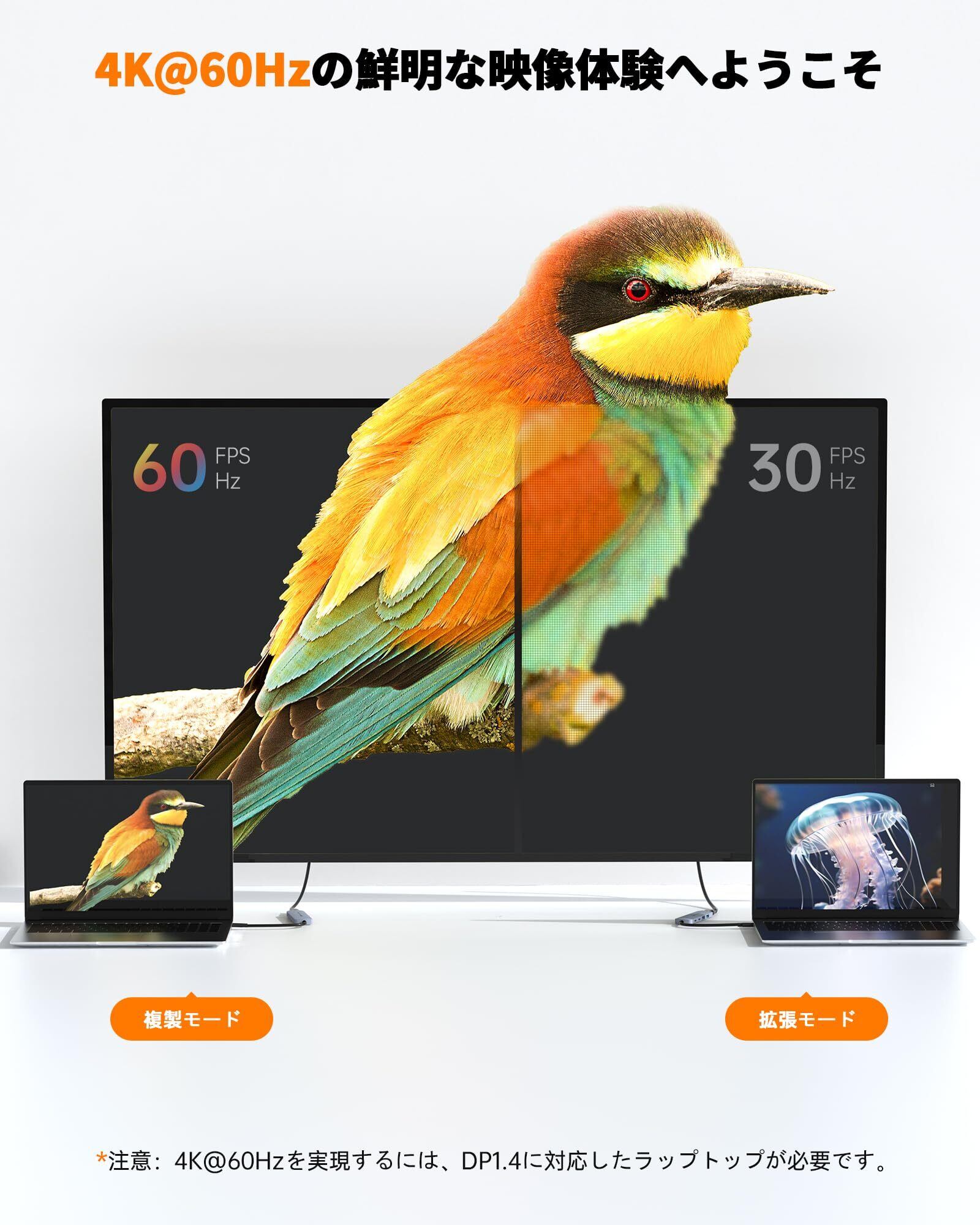 没入型のビジュアル体験:タイプ C ハブを使用して、HDMI出力を介してクリアな4K@60Hzの解像度で視聴体験を高めましょう。写真家、ビデオエディター、マルチメディア愛好家に最適です。注:USB Cハブを購入する前に、ノートパソコンのUSB-CポートがThunderbolt 3/4またはDP Altモードをサポートしているかを確認してください。
